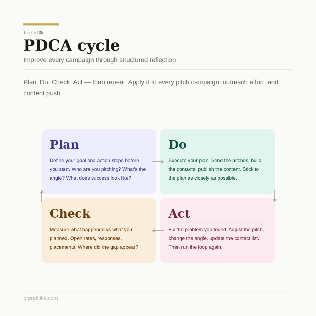 PR specialists spend a lot of time managing — contacts, channels, formats, relationships. But managing without a system is just organized chaos. These five tools, borrowed from marketing, bring structure to the work and make it measurably more effective.